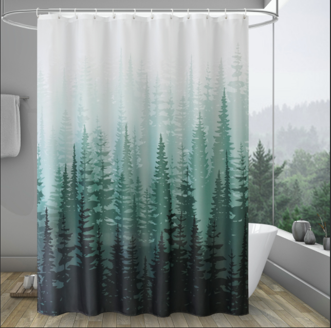 Bring nature home with this Green Forest Fabric Shower Curtain, as if you were in the mountains and water, allowing you to relax both physically and mentally as you bathe. With natural ink and HD printing, the color is vibrant, the image is clear, and it will not fade or stain for long use.The reinforced top hem with metal grommets ensures that the shower curtain hangs securely, while the weighted wire line bottom hem keeps it in place. This Shower Curtain comes with 12 plastic hooks, making it easy to install and use. This shower curtain is Eco-friendly, with no toxic materials or unpleasant smells. It is also machine washable, making it easy to clean and maintain. You can use it as a shower curtain alone without a liner to get more room inside. Great material, clear image with forest gradient design, weighted hem and drapes great , you’ll be very pleased with the quality of this curtain and the appearance!
